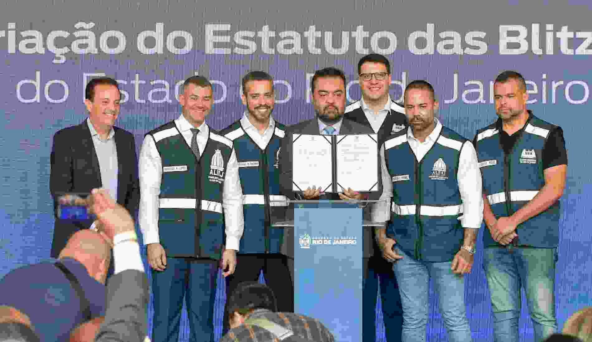 O Estatuto das Blitzes (Lei 10.900/25) está em vigor. Oriunda da Indicação Legislativa 198/23, aprovada pela Assembleia Legislativa do Estado do Rio de Janeiro (Alerj), proposta pelos deputados Alan Lopes (PL), Rodrigo Amorim (União) e Filippe Poubel (PL) – com total apoio do presidente da Casa, deputado Rodrigo Bacellar (União) -, a medida se transformou num projeto de lei do Governo do Estado enviado ao Parlamento Fluminense, que foi aprovado pela Alerj. E para oficializar a criação da lei, o Executivo realizou solenidade nesta quarta-feira (23/07), no Palácio Guanabara, com a presença de diversos deputados e autoridades.