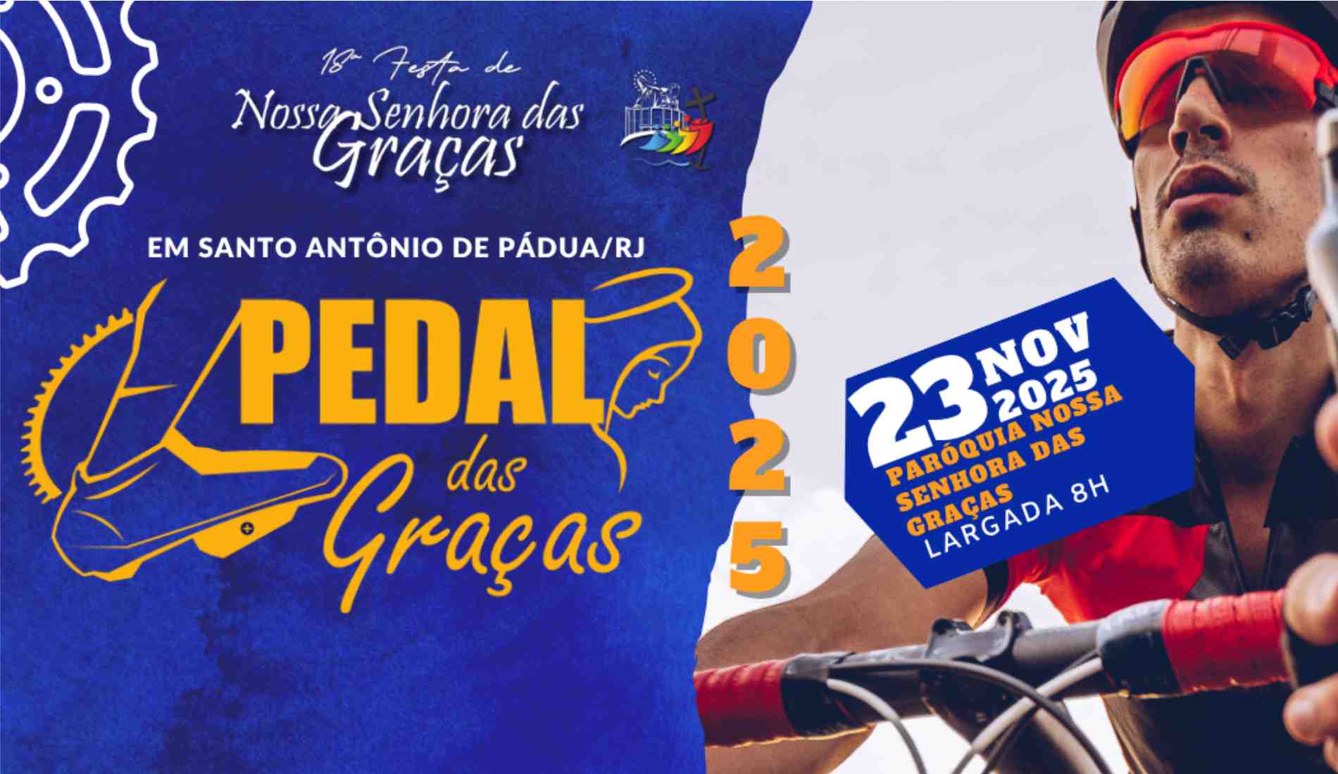 Vem aí mais uma edição do Pedal das Graças, evento que já se tornou tradição em Santo Antônio de Pádua/RJ! A edição de 2025 acontece no dia 23 de novembro, com largada às 8h, saindo da Paróquia Nossa Senhora das Graças. (Café das 07h às 08h)
